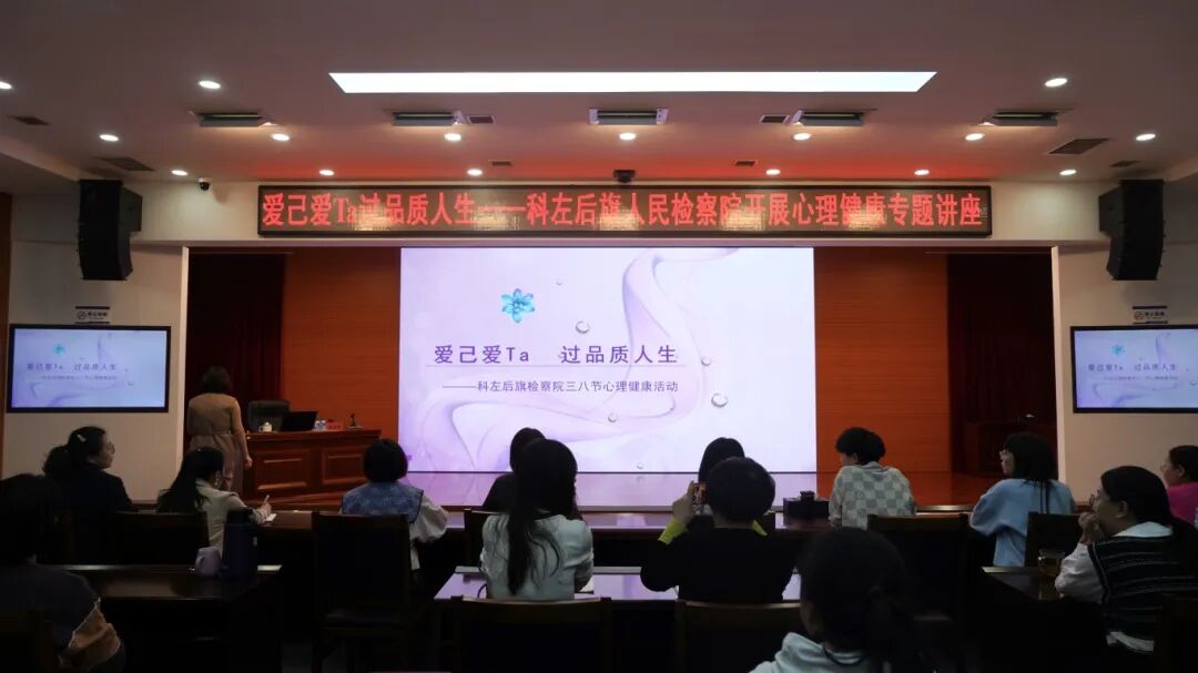 为进一步关爱女性检察人员身心健康,引导女性检察人员学会正确的心理调节,促进个人心理健康和家庭和谐,3月7日,在“3·8”妇女节来临之际,科左后旗检察院特邀请国家二级心理咨询师张艳玲老师到我院开展以“爱己爱Ta 过品质人生”为题的“3·8”妇女节石榴籽大讲堂心理健康专题辅导讲座,为全院女性检察人员送上了一份特殊的节日礼物。