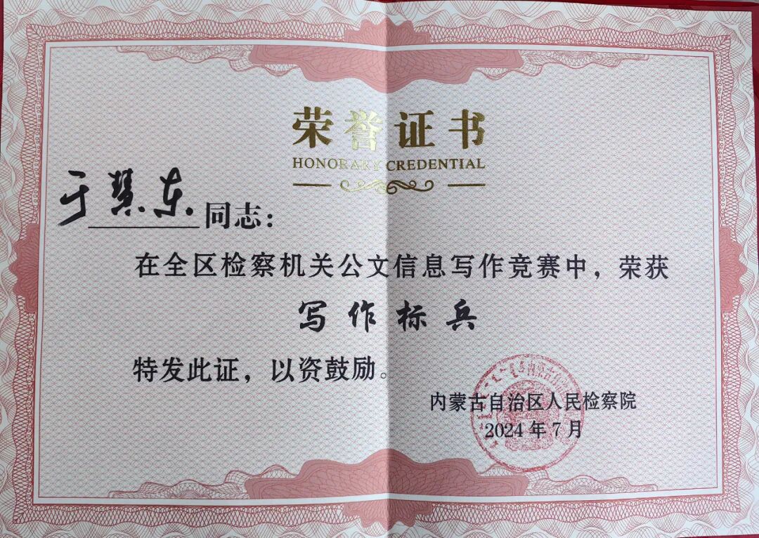 7月4日,内蒙古自治区检察机关公文信息写作竞赛圆满落幕。经过激烈角逐,通辽市检察院刘永胜、于慧东在51名参赛人员中脱颖而出,被评为全区检察机关公文信息写作竞赛标兵,通辽市检察院荣获优秀组织奖。
