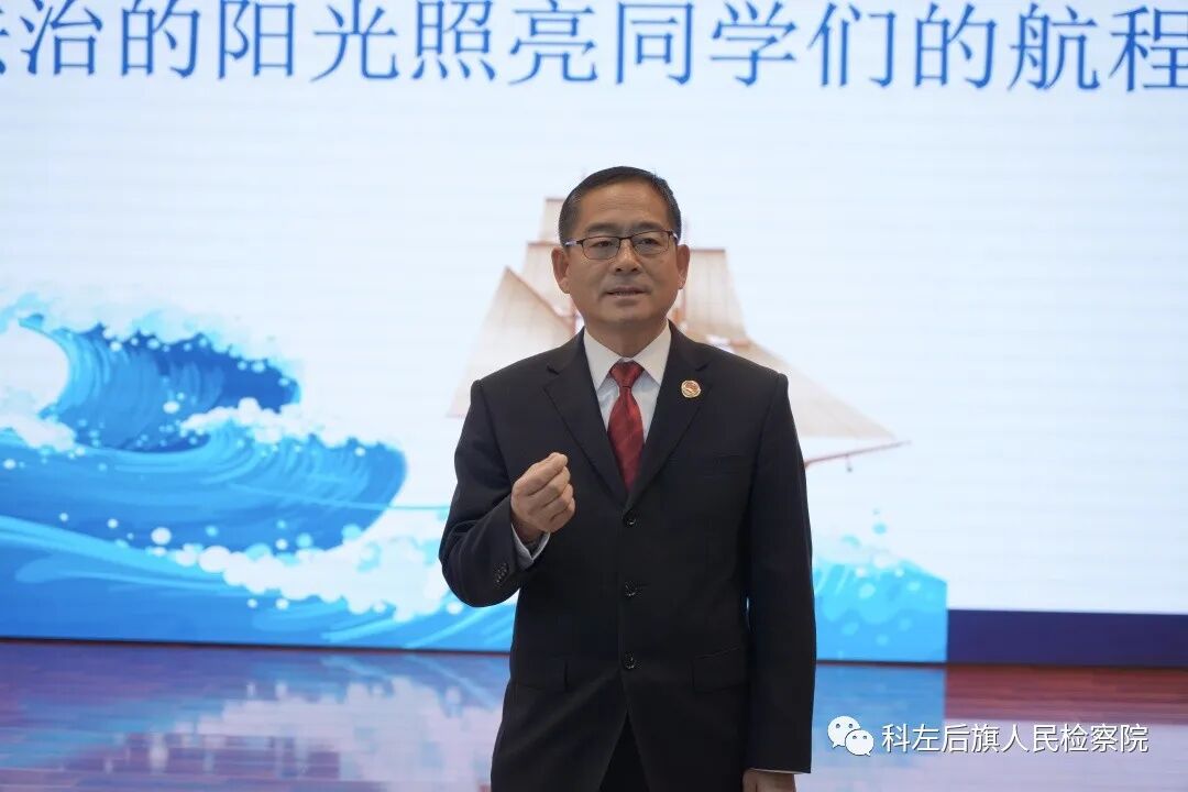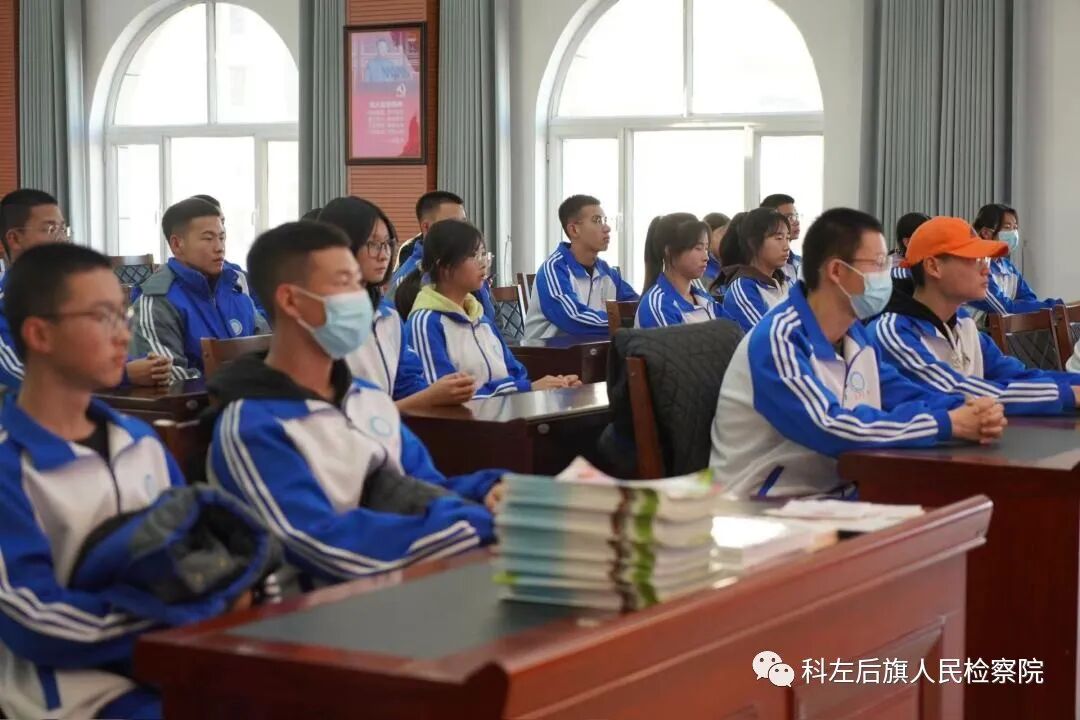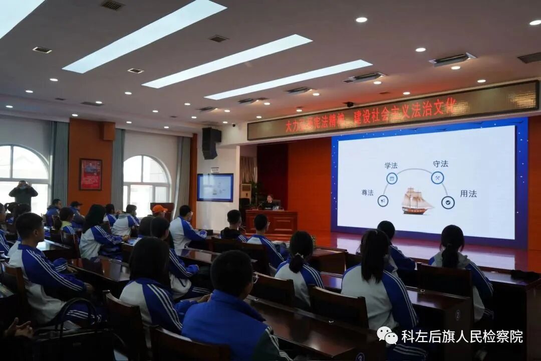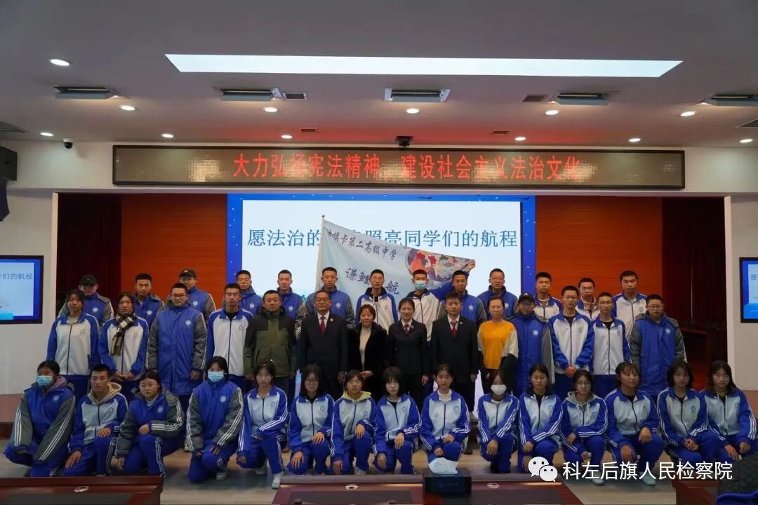 2023年12月1日,在第十个国家宪法日来临之际,科左后旗检察院党组书记、检察长、甘旗卡第二高级中学法治副校长王旭英邀请团旗委工作人员和甘二中五十名学生来到检察院“做客”,近距离了解检察文化,体验检察工作,聆听普法讲座。