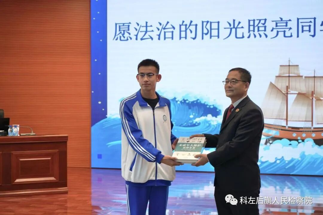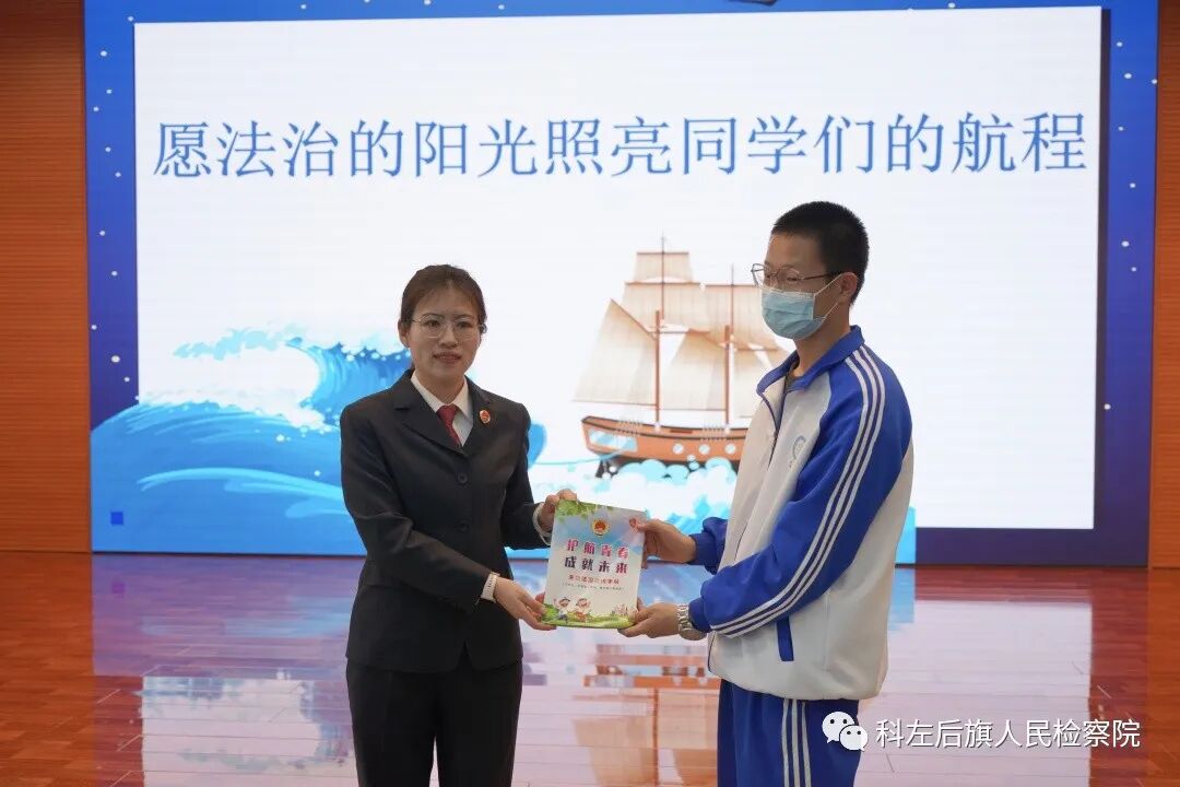 活动最后,王旭英检察长和赵珊检察官代表科左后旗检察院向学生们赠送了《未成年人保护法律全书》和《护航青春 成就未来》普法宣传手册等法治礼包,力求法律在校内校外、课上课下陪伴学生们左右。